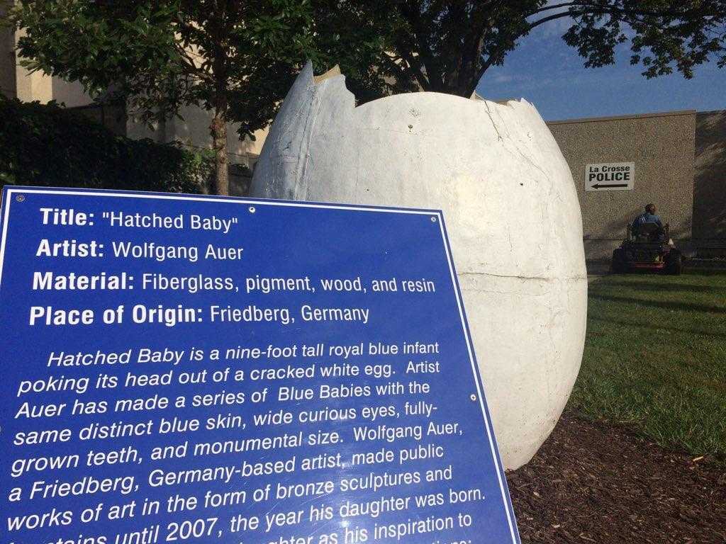 The blue baby head of a sculpture situated outside La Crosse City Hall appears to have been taken over the weekend as its egg base was seen empty still as of Monday morning. Its been over a month since Hatched Baby was vandalized outside the La Crosse Police Station. LA CROSSE WIS In a proactive move the La Crosse County Health Department LCHD has fitted the Blue Baby statue with a face mask to help stop the spread of the COVID-19 virus for when it. The blue baby head of a sculpture situated outside La Crosse City Hall appears to have been taken over the weekend as its egg base was seen empty still as of Monday morning. Its just a broken egg now. LA CROSSE WIS The citys most notorious art display is now in police custody after several accusations of voter intimidation. Its the talk of the town and many are wondering.